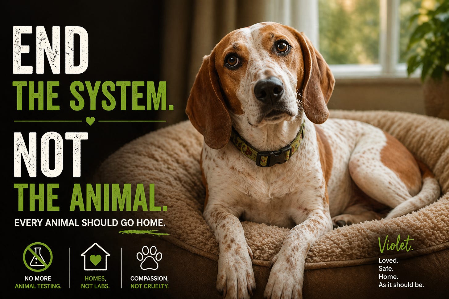 That is what advocacy looks like over a long arc. You do the work. You keep doing the work. Then one day, a hound walks out of a lab in your arms, and a few years later her name is on a Senate bill that will save thousands more like her.